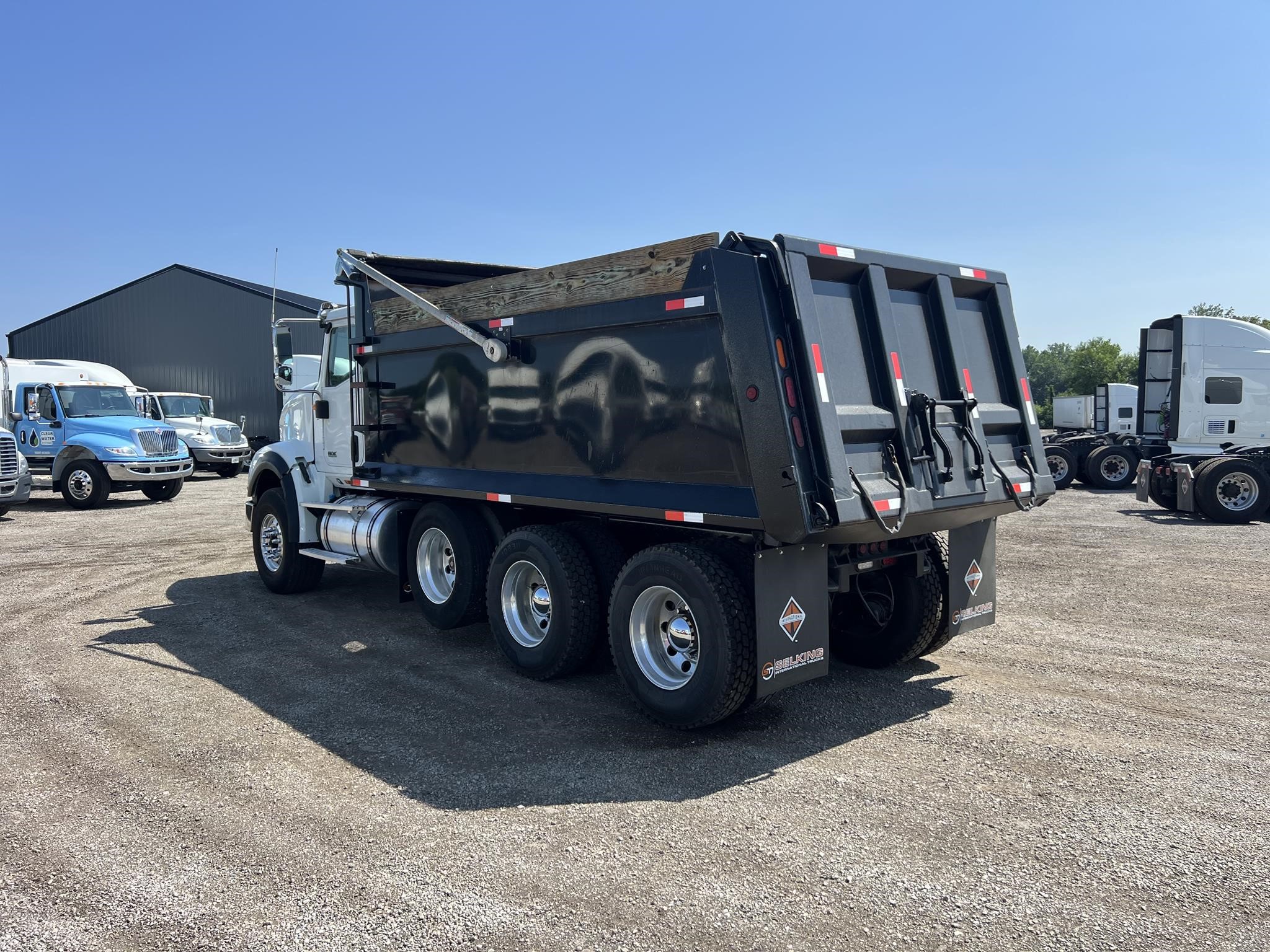 This 2019 International HX620 is a hard-to-find, heavy-duty dump truck built to handle serious work. Powered by a strong Cummins X15 and paired with an Allison 4500 RDS automatic, it’s equipped with a rugged Rowe Hardox 16.5’ dump body, a 25K non-steerable pusher, and all the right specs for durability and performance.