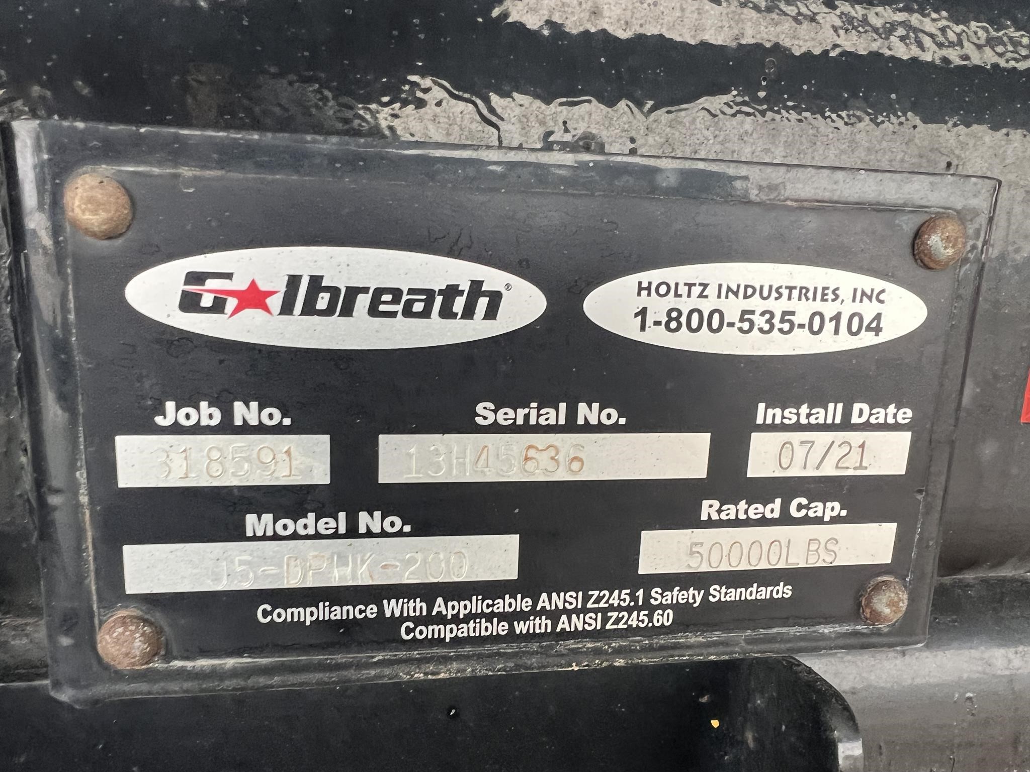 Galbreath 50K Hook Hoist, 62″ Hook Height, Model #: 15-DPHK-200, Includes 22′ Bin